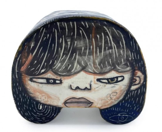 시카고에 거주하는 예술가 케빈 스나입스는 2차원과 3차원 예술의 교차점을 넘나들며, 자신의 그림의 표면이 되는 세라믹 물체를 만듭니다. 아웃사이더 아트 의 역사를 끌어온 스나입스는 직관적이고 개인적인 경험에 기반한 방식으로 자신의 작품을 만듭니다. 그의 색다른 모양은 형식적인 실험에서 비롯되었으며, 종종 신체를 참조하는 것처럼 보이며, 이러한 관계는 그가 표면에 새겨서 그리는 복잡한 만화 같은 인물에 의해 강조됩니다. 스나입스는 "저는 제 작품을 일종의 눈사람 공이라고 생각합니다."라고 말했습니다. "모든 각도를 볼 수 있습니다. 하지만 그릇의 경우 다른 관점을 보려면 뒤집어야 합니다. 측면이 분리되어 있습니다."