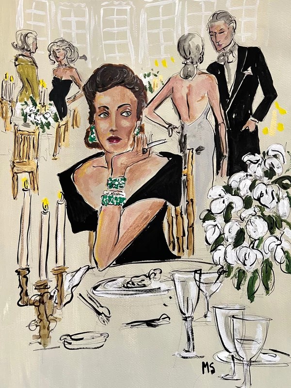 Manuel Santelices는 패션 , 상류 사회, 대중 문화 의 렌즈를 통해 현대 초상화를 탐구합니다 . 유명인 에 매료된 Santelices는 디자인 , 예술, 스타일, 정치를 다루는 저널리스트 로서의 수년간의 경험과 예리한 관찰력 , 특히 Vogue Mexico 와 Elle , Harper's Bazaar , Esquire 의 스페인어 버전을 담당했으며, 이는 그의 수채화 및 아크릴 그림과 일러스트레이션에 영향을 미쳤습니다 . 대중 매체 이미지도 그의 세련된 비유적 구성에 영감을 주었습니다. 칠레 에서 태어났지만 뉴욕 에 거주하는 Santelices는 상업 일러스트레이터로도 활동합니다. 그의 고객으로는 Chanel , MAC Cosmetics, Tiffany & Co. , H&M 이 있습니다 .