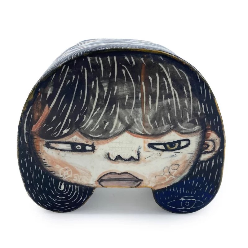 시카고에 거주하는 예술가 케빈 스나입스는 2차원과 3차원 예술의 교차점을 넘나들며, 자신의 그림의 표면이 되는 세라믹 물체를 만듭니다. 아웃사이더 아트 의 역사를 끌어온 스나입스는 직관적이고 개인적인 경험에 기반한 방식으로 자신의 작품을 만듭니다. 그의 색다른 모양은 형식적인 실험에서 비롯되었으며, 종종 신체를 참조하는 것처럼 보이며, 이러한 관계는 그가 표면에 새겨서 그리는 복잡한 만화 같은 인물에 의해 강조됩니다. 스나입스는 "저는 제 작품을 일종의 눈사람 공이라고 생각합니다."라고 말했습니다. "모든 각도를 볼 수 있습니다. 하지만 그릇의 경우 다른 관점을 보려면 뒤집어야 합니다. 측면이 분리되어 있습니다."